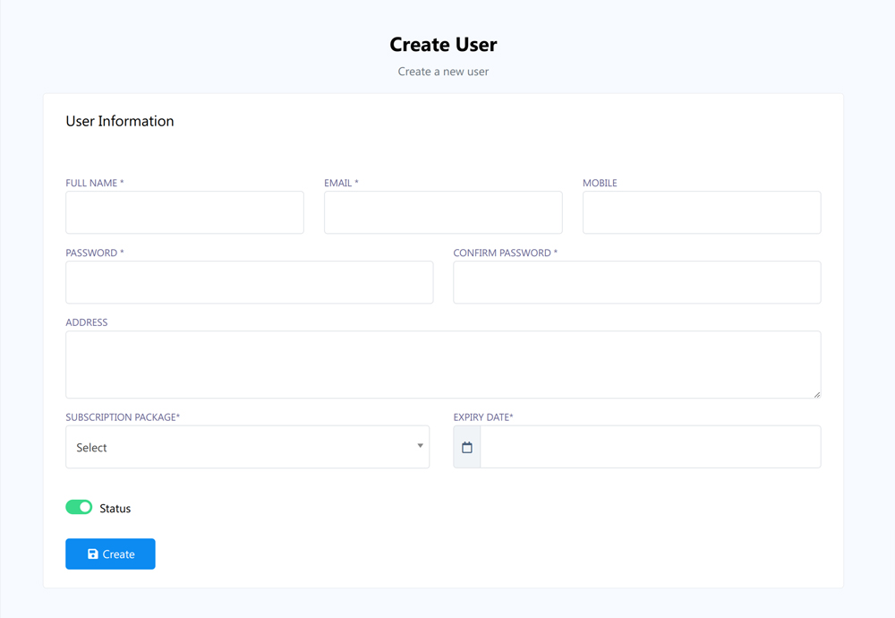 As previously mentioned, the extended license of this app includes a multi-user platform, unlocking a range of features relevant to SaaS businesses. One of these features is the User Manager, which allows users to sign up directly or for the admin to manage users from the panel.